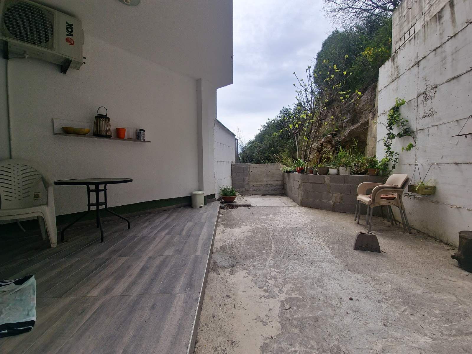 - Große Terrasse mit seitlichem Ausblick auf das Meer.