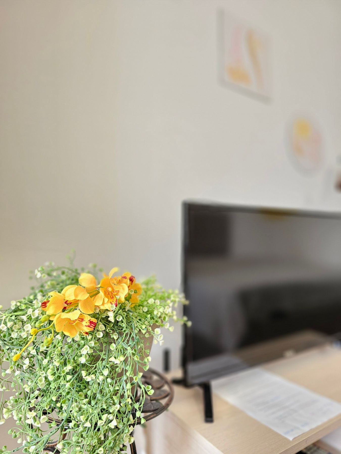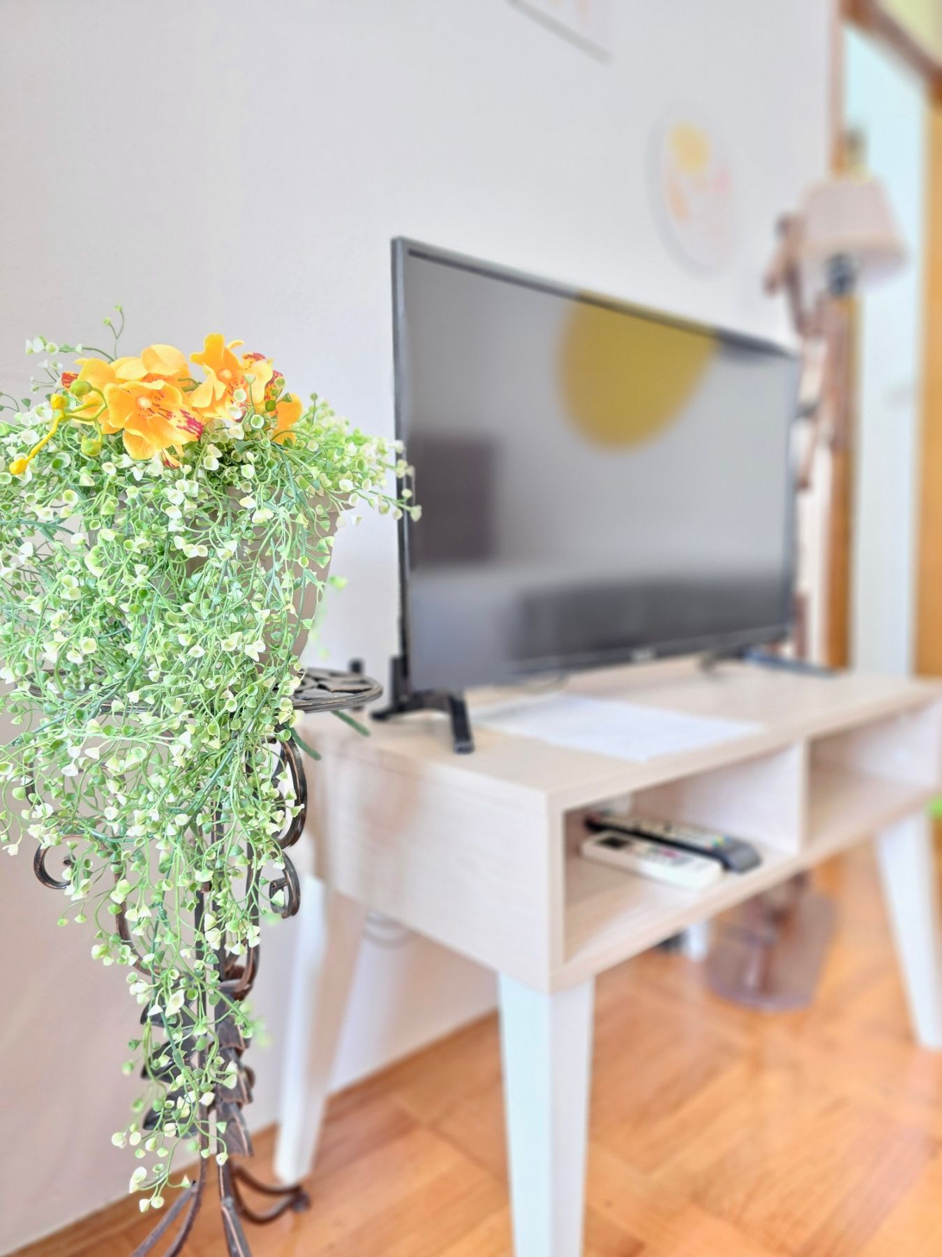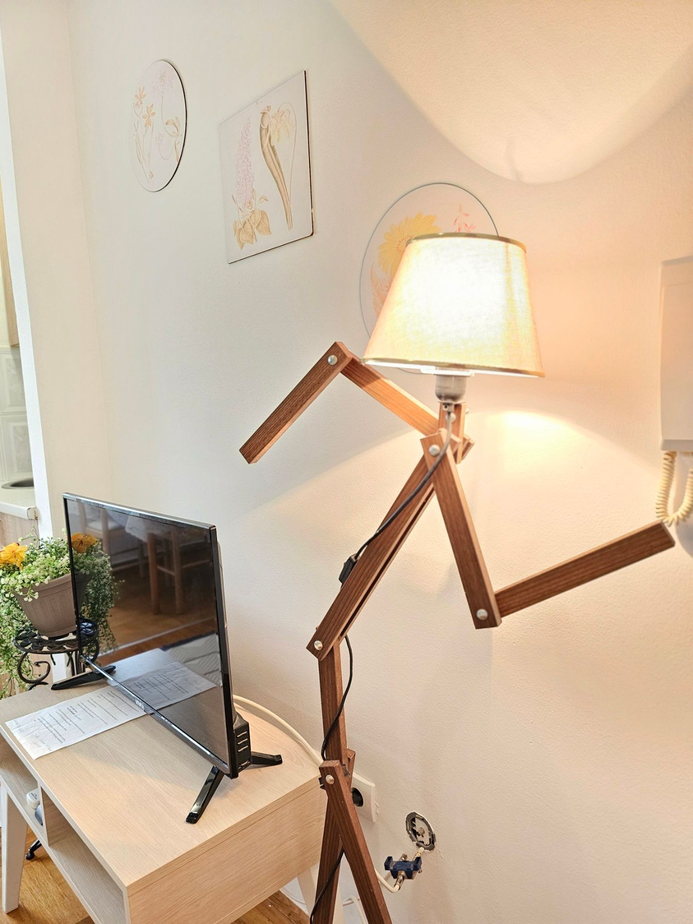 Er befindet sich auf einem hohen Stockwerk einer Wohngebäude und ist funktional aufgebaut – er besteht aus Eingangsbereich, Wohnzimmer mit Küche und Essbereich sowie Bad.
