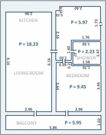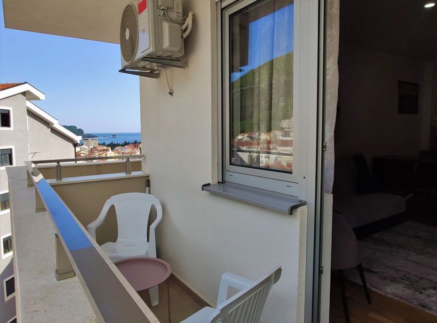 The apartment has a one-room structure and has: living room with kitchen and dining room, one bedroom, bathroom, and a terrace with a beautiful side view of the sea and the city.