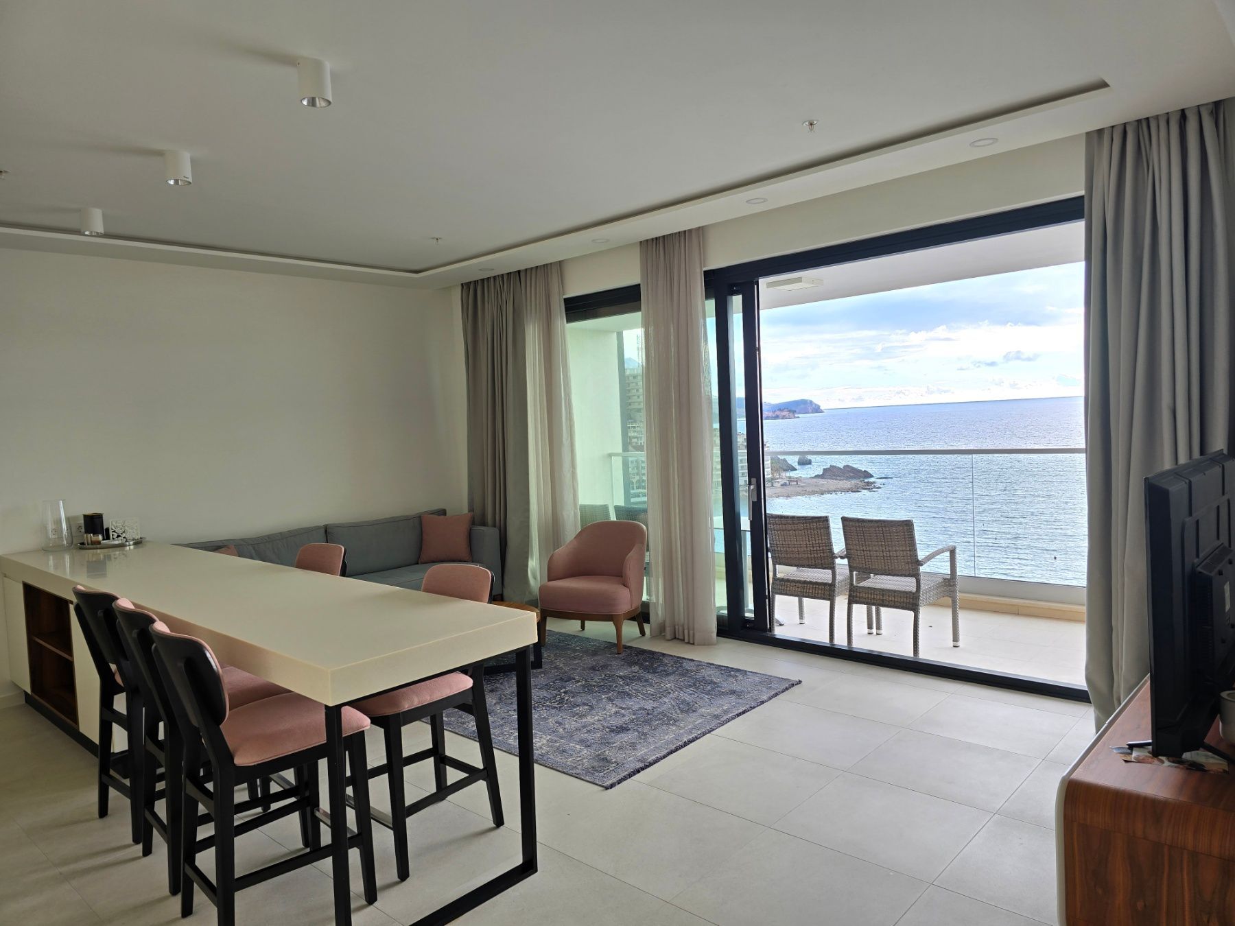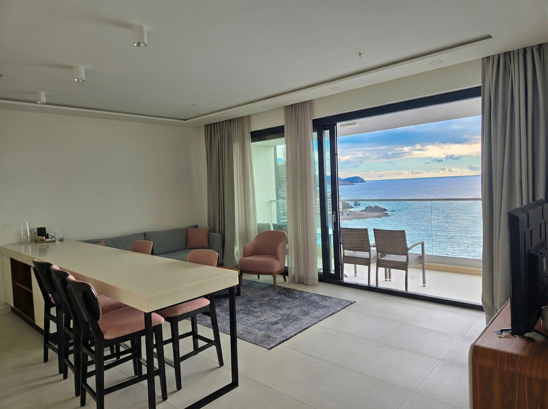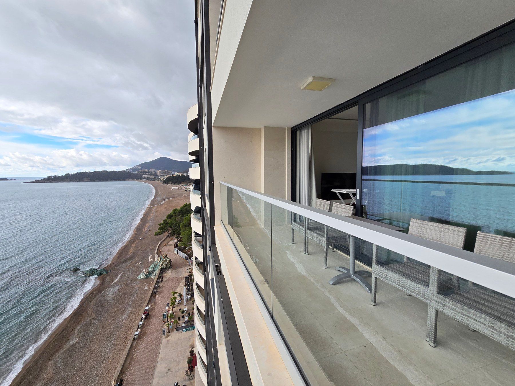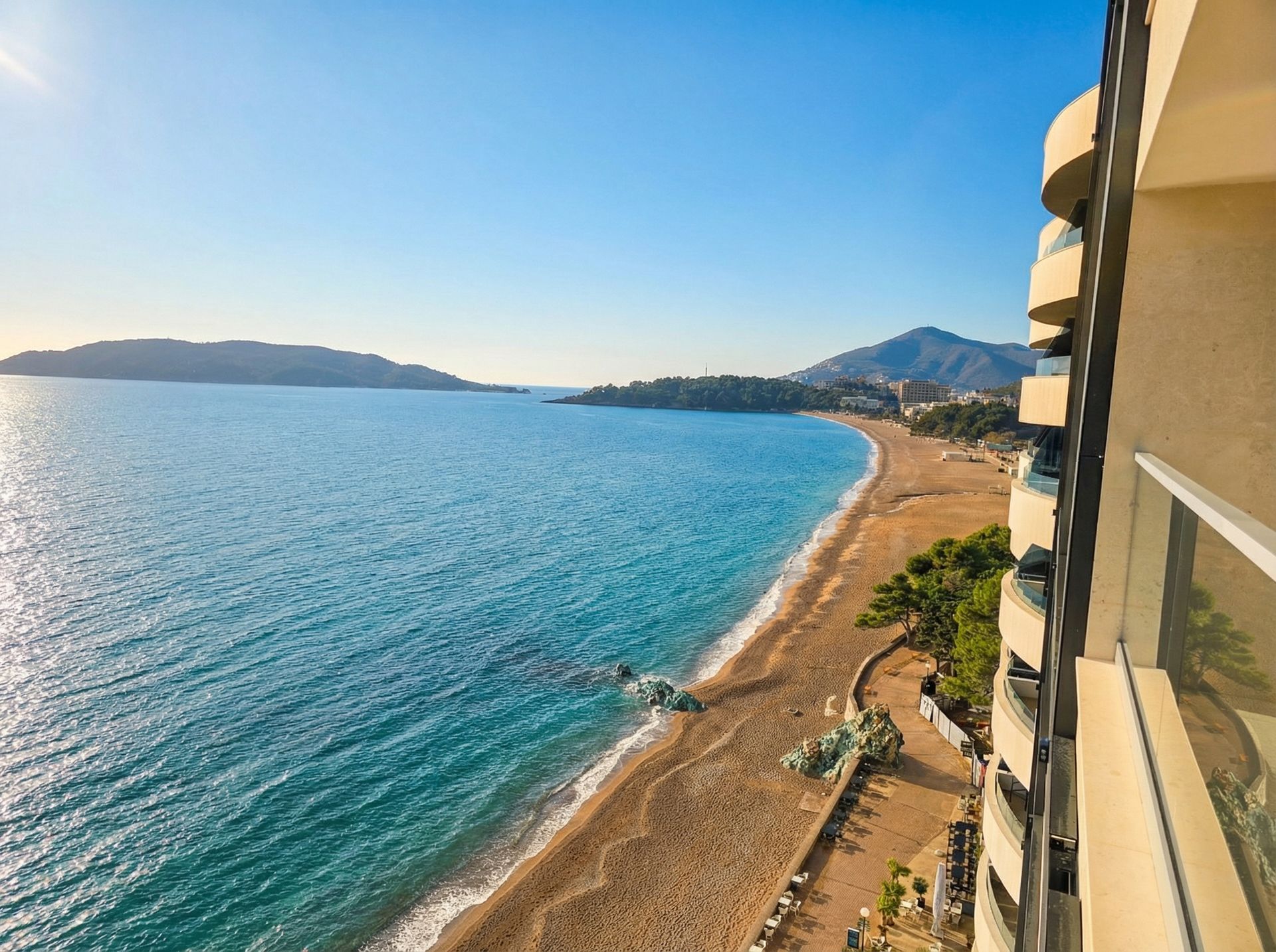 A highly attractive luxury two-bedroom apartment is for sale, located directly on the seafront in Rafailovići, one of the most sought-after and prestigious locations on the Montenegrin coast. The apartment offers a spectacular open panoramic sea view.