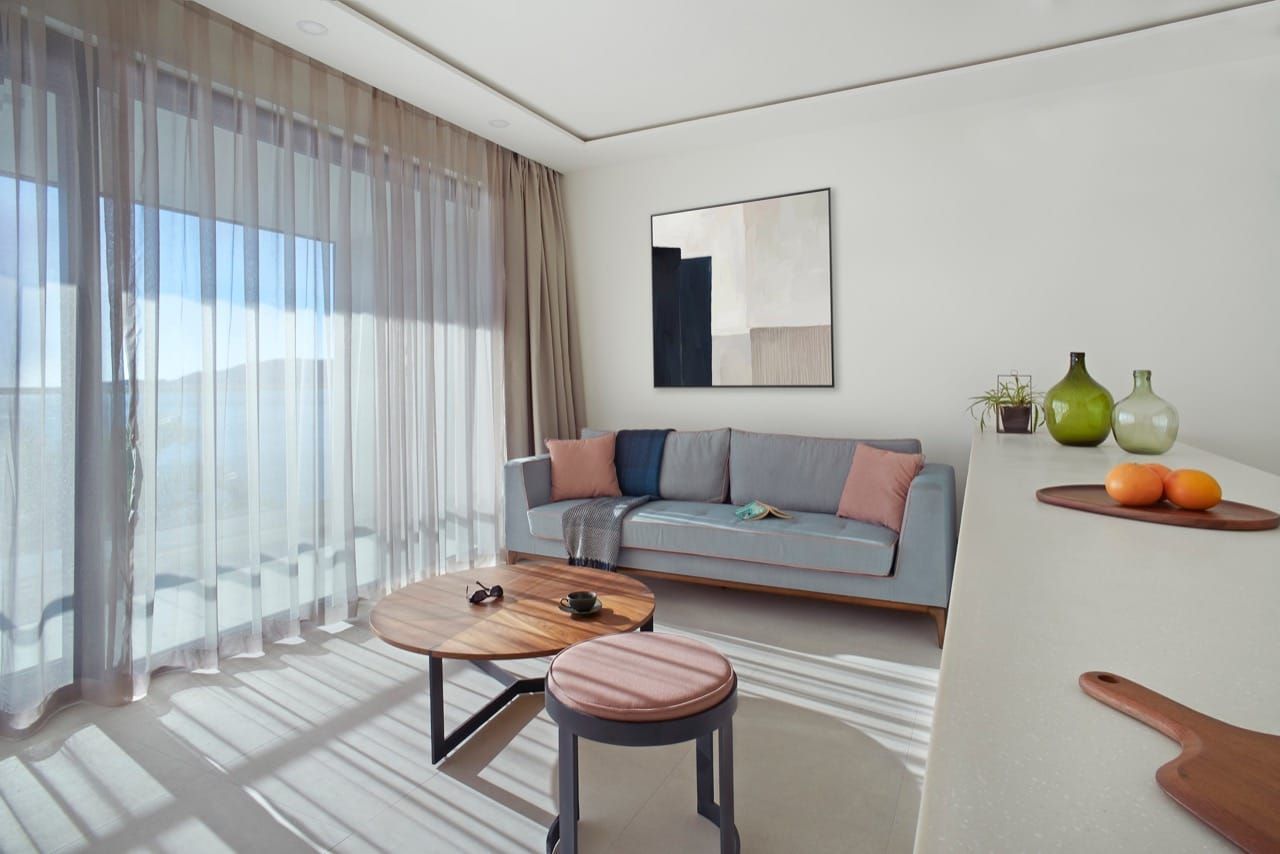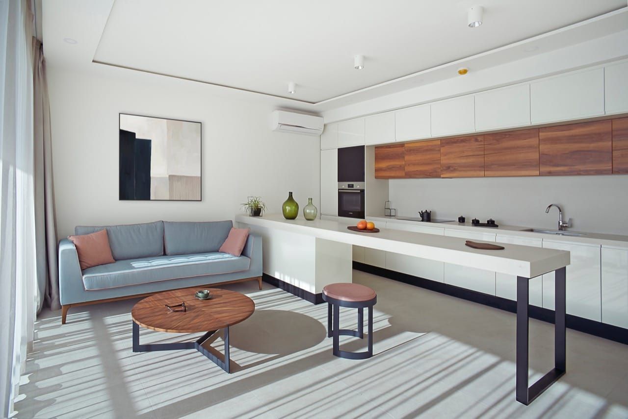 The interior is designed in a contemporary and luxurious style, featuring carefully selected furniture and high-quality materials. The apartment is fully furnished with new furniture, modern kitchen and bathroom appliances, air-conditioned, and equipped with a TV, ensuring maximum comfort for living or rental purposes.