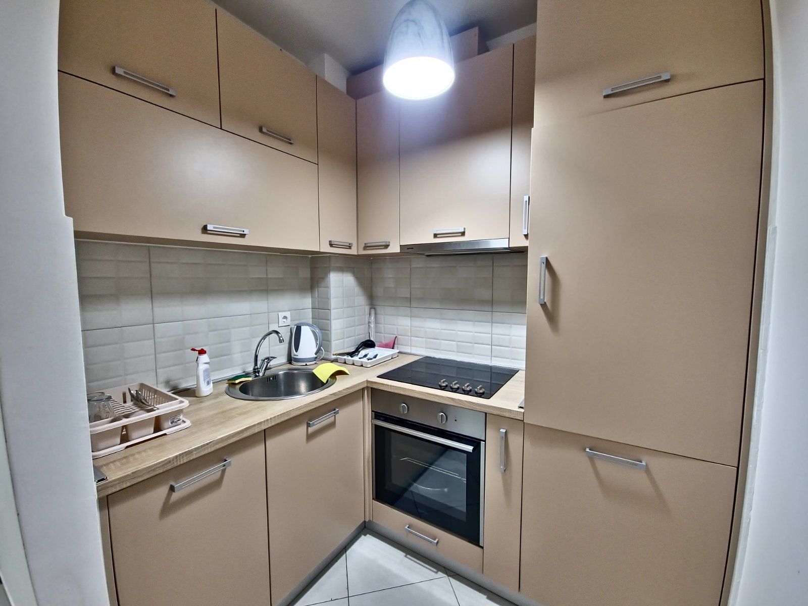 A modernly equipped, unfurnished one-bedroom apartment in Bečići is for rent.