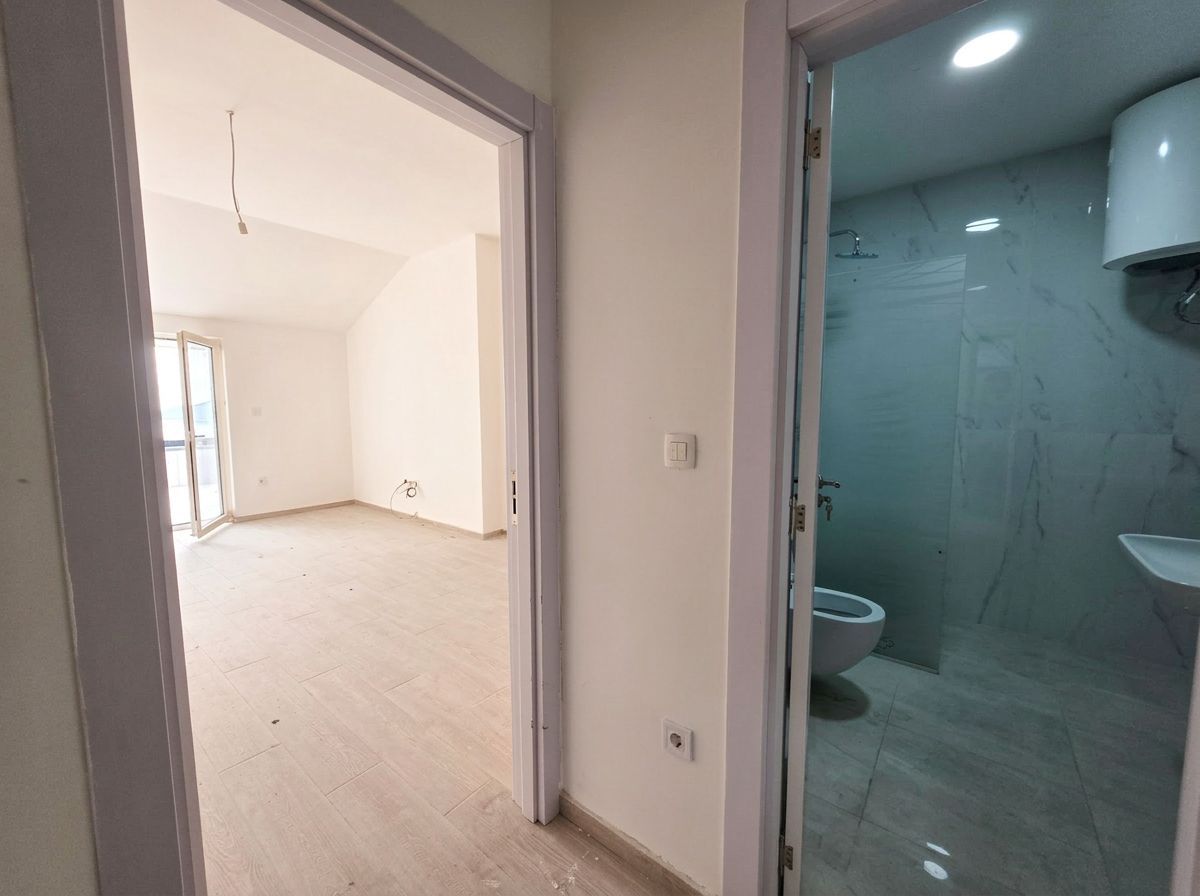 A new one-bedroom apartment with a panoramic view in an attractive part of Bečići is being sold, ideal for living and as a secure investment for rental. The apartment has an area of 50m² and is located on the 10th floor of a modern building with a lift.