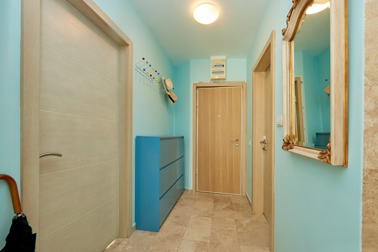 The property is located just 5–7 minutes' walk from the sea, in a peaceful part of the Budva Riviera known for its clean air, Mediterranean climate and spectacular sea views and the island of Sveti Stefan, close to restaurants, shops and promenades.