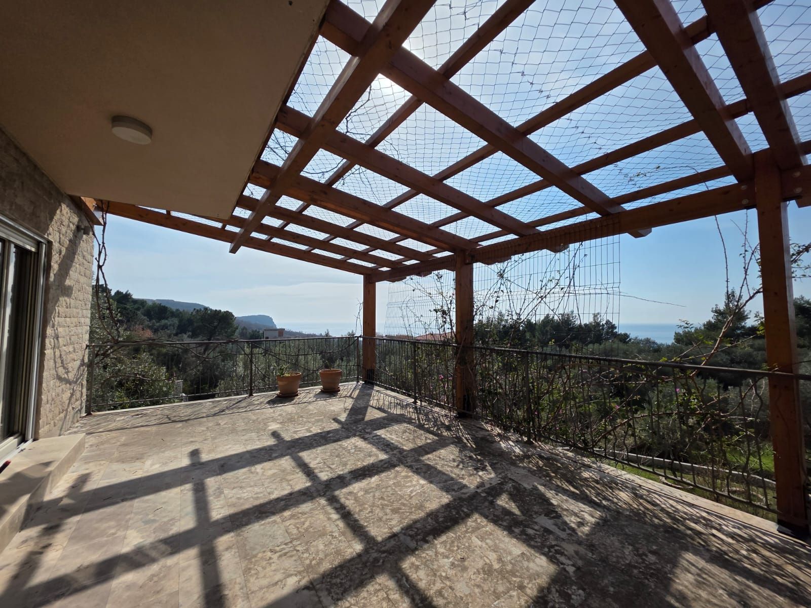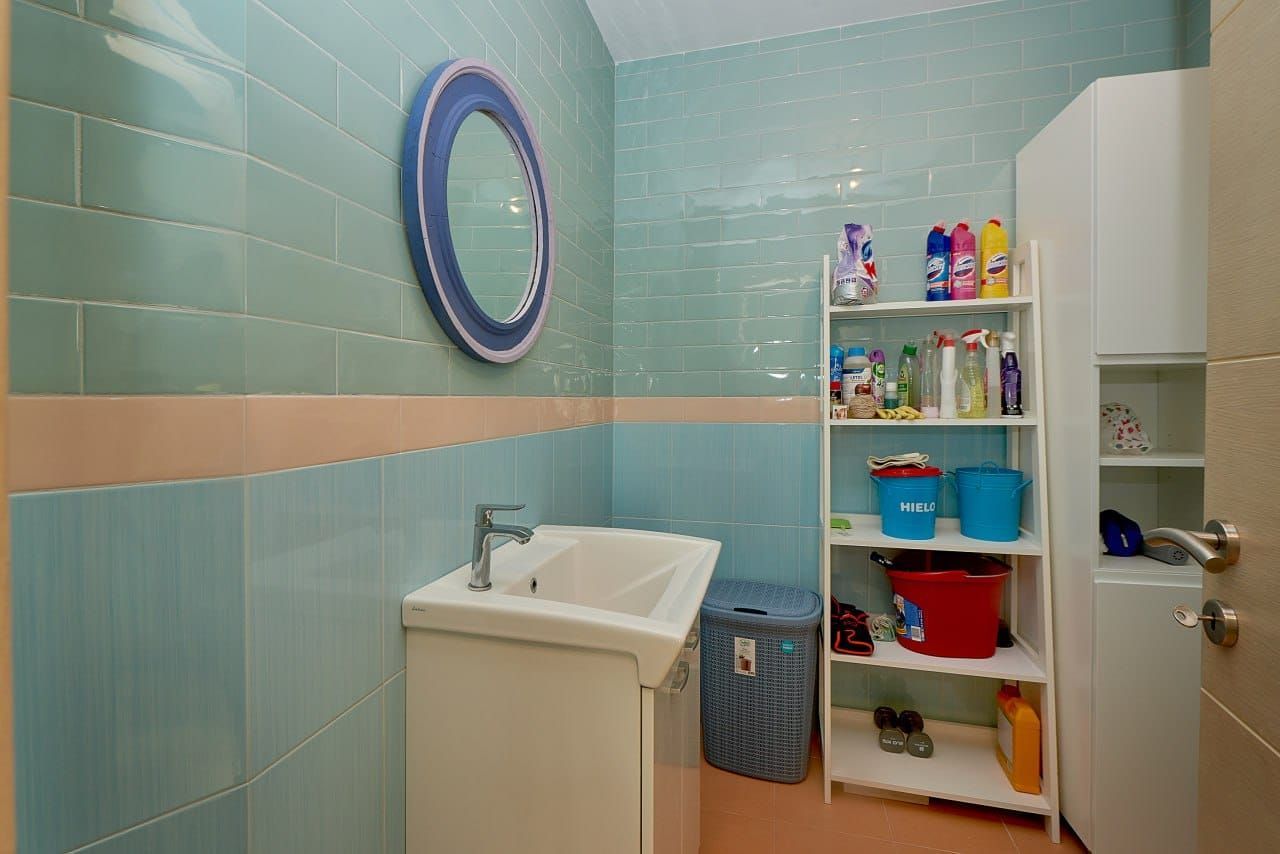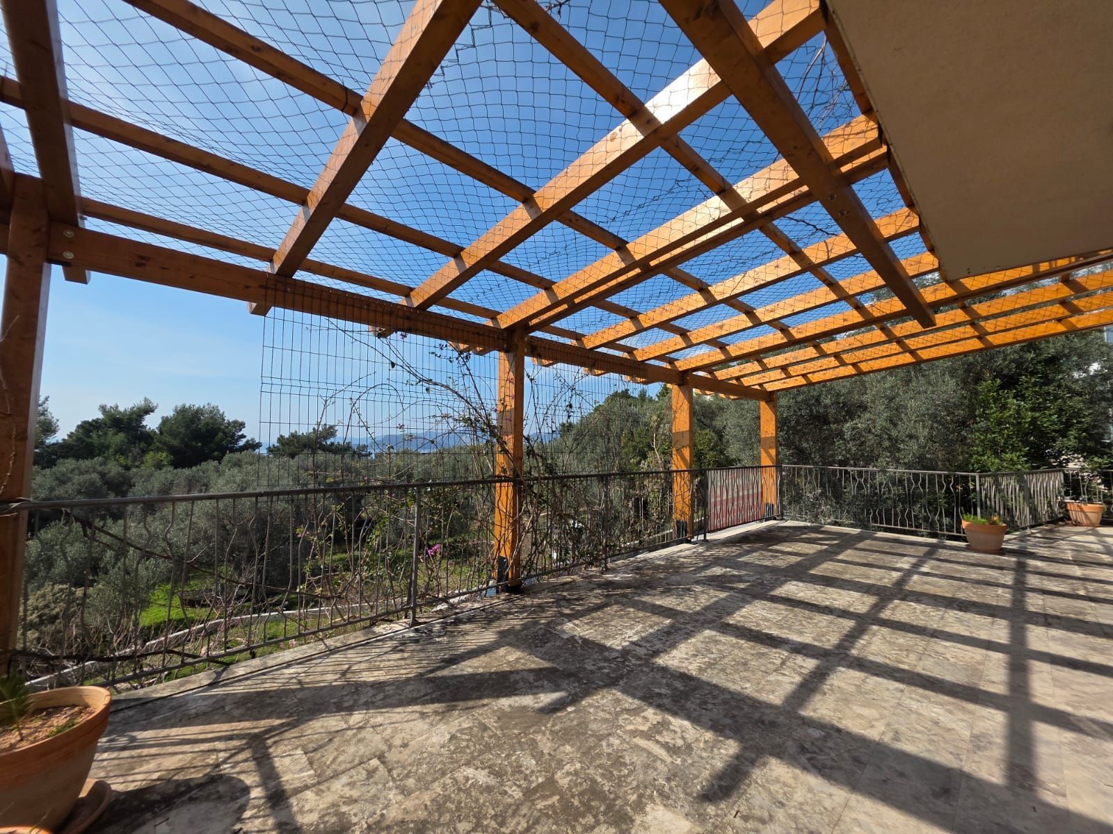 The structure of the apartment includes three bedrooms, two modern bathrooms with underfloor heating, two kitchens, two spacious living rooms and a dining room, as well as two large terraces with a view of the sea, one of which is equipped with a pergola for enjoying the outdoors. The apartment also has a wine room, a laundry room and a utility room.