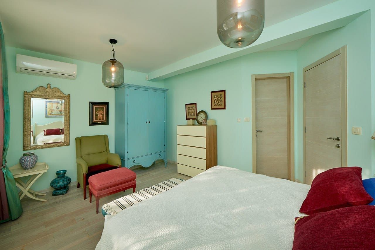 An enormous and unique duplex apartment on two floors is available for rent in the peaceful and attractive settlement of Sveti Stefan, in the Crvena Glavica area, on the way to the sea and Gali Beach. The apartment is in an exceptional location with a beautiful view of the sea.