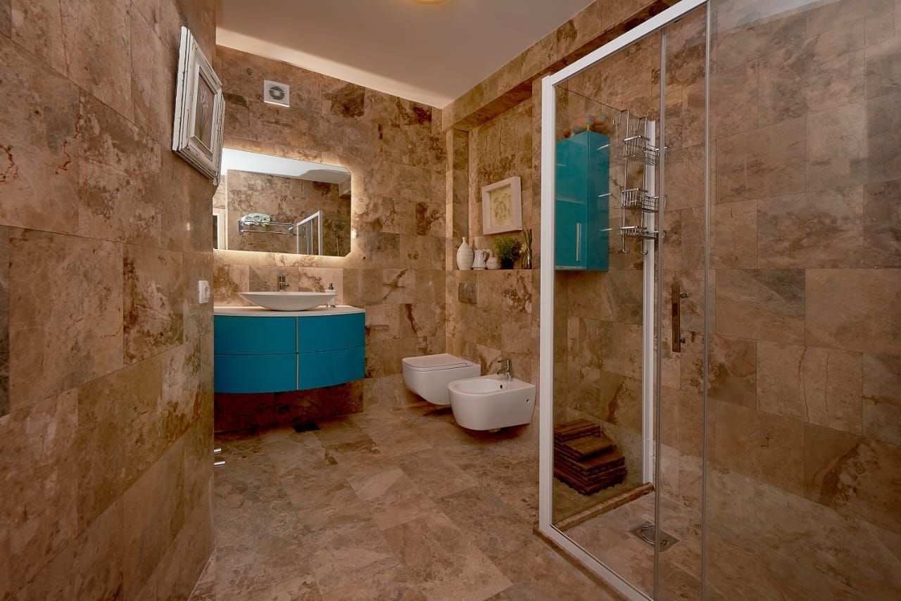 The property is located just 5–7 minutes' easy walk from the sea, in a peaceful part of the Budva Riviera known for its clean air, Mediterranean climate and spectacular views of the sea and Sveti Stefan Island, with the proximity of restaurants, shops and promenades.