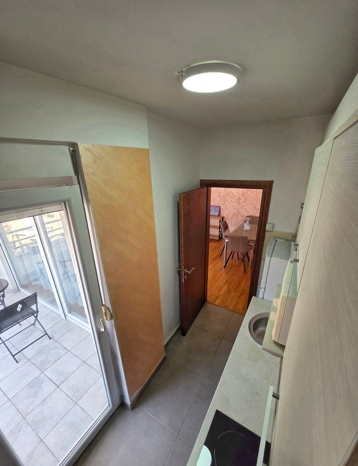 The apartment consists of one bedroom, a spacious living room with a dining area and kitchen, a bathroom, and a terrace.
