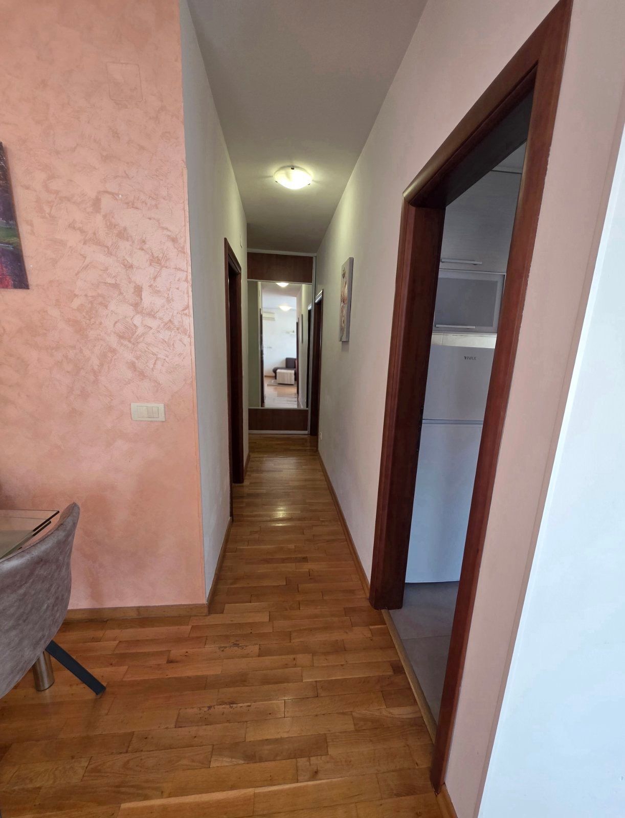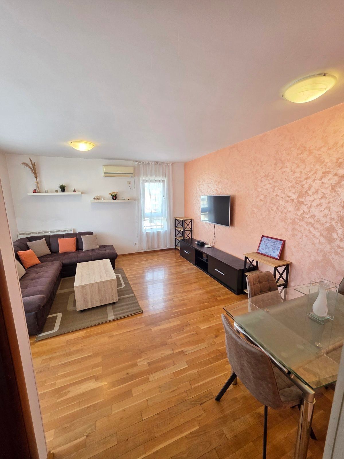 A one-bedroom furnished apartment of 54 m² is available for rent, located on the 2nd floor of a building in the very center of Budva.