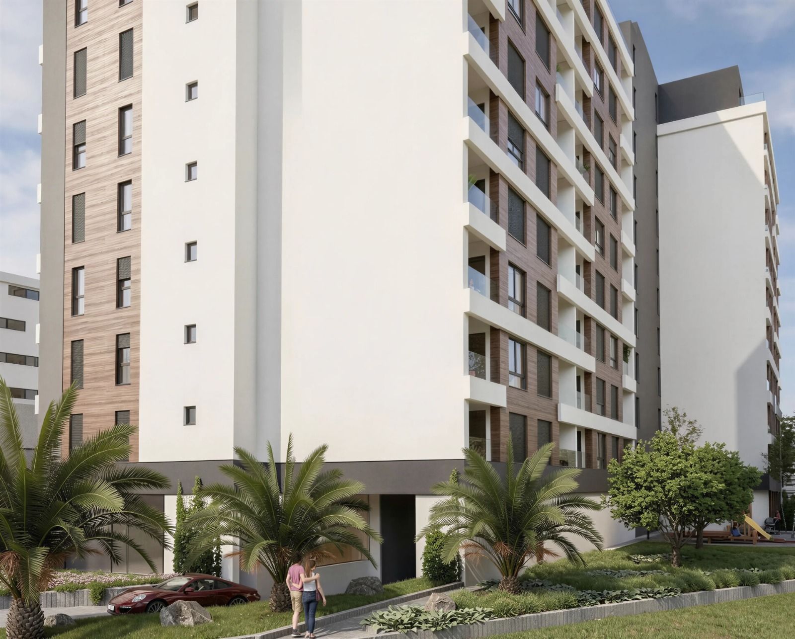 The complex is located just 50–150 meters from Žukotrlica beach, one of the most popular beaches in Bar, about 1 km long, with restaurants and a promenade. Cafes, restaurants, supermarkets, pharmacies and all the necessary amenities for everyday life are in the immediate vicinity. The center of Bar is about 500 meters away, or a 10-minute easy walk. Schools, post offices, clinics, sports centers and a stadium are also nearby.