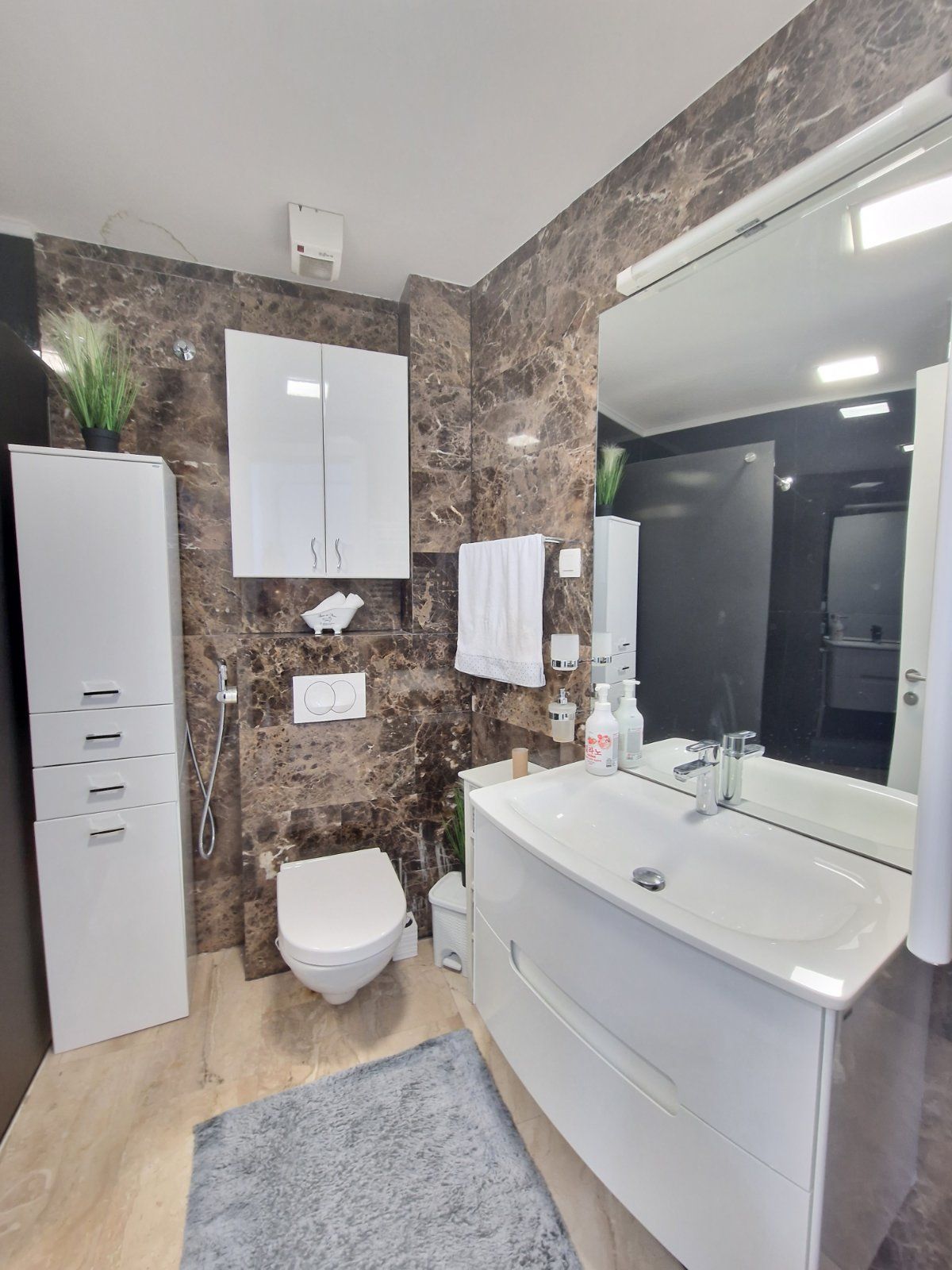 The location of the apartment is extremely attractive; restaurants, healthy food stores, banks, pharmacies, boutiques, cosmetic salons and dental offices are in the immediate vicinity, while Old Town, the marina, the promenade by the sea, Slovenska Plaza Park, children's playgrounds and nightclubs are just 5 minutes' walk away.