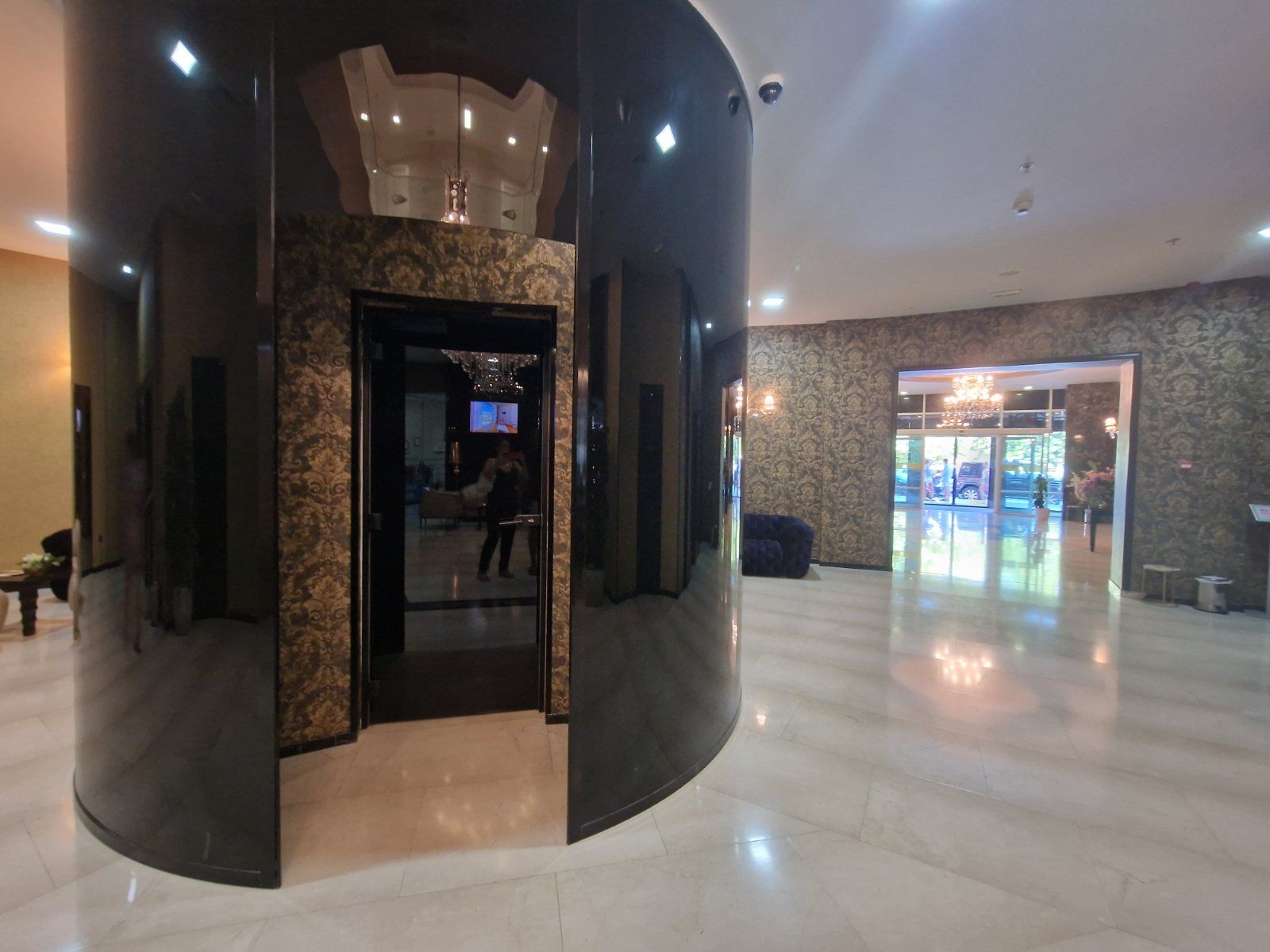 The complex offers numerous amenities including a restaurant and a café, a sauna and a Turkish bath, a fitness center and recreational facilities, video surveillance and a security service, as well as landscaped communal green spaces.