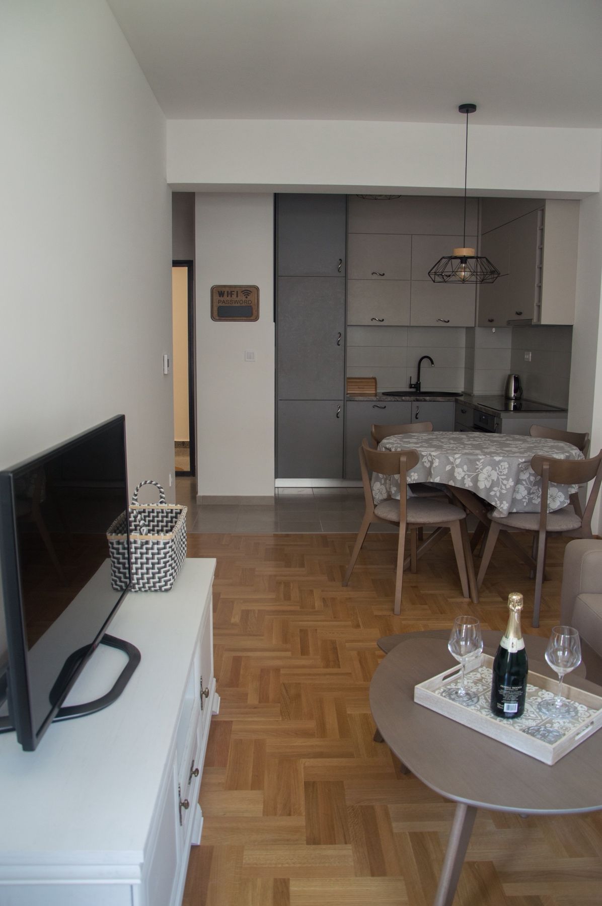 The apartment is fully equipped with all necessary items and furnished with modern furniture.