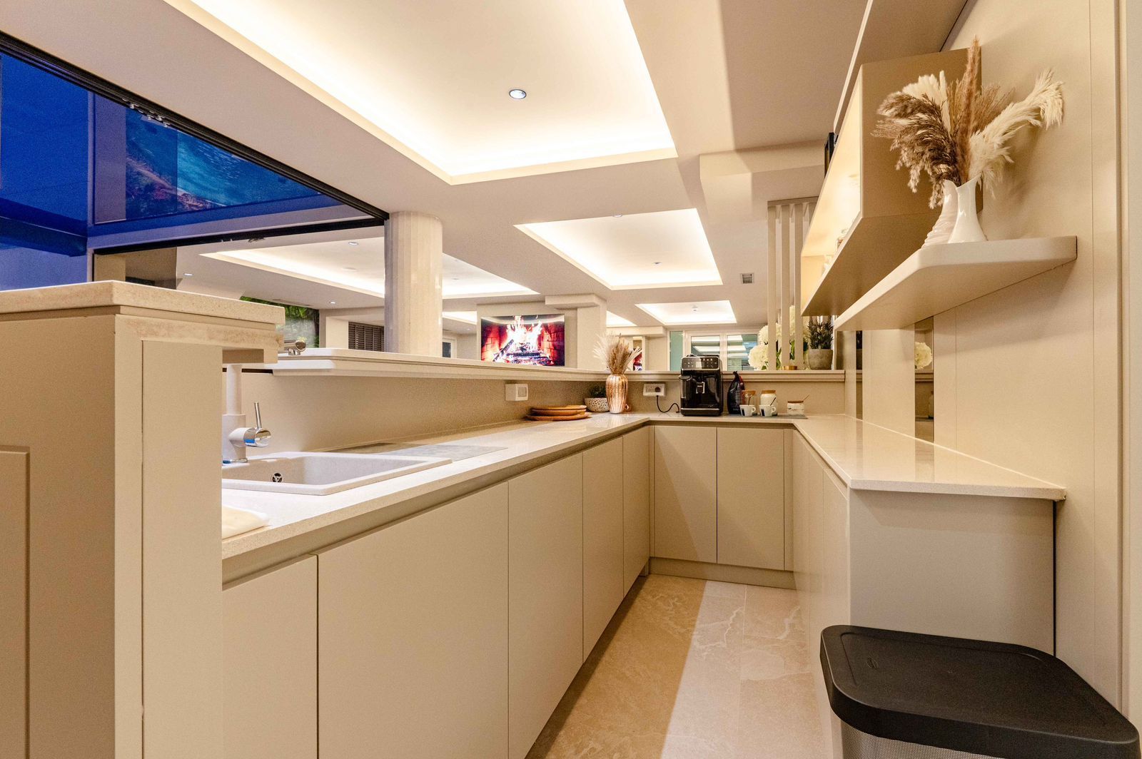 This exceptional apartment has an area of 96 m² and is located in an exclusive area just below the highway, in a hotel-type residential building with a wellness spa center.