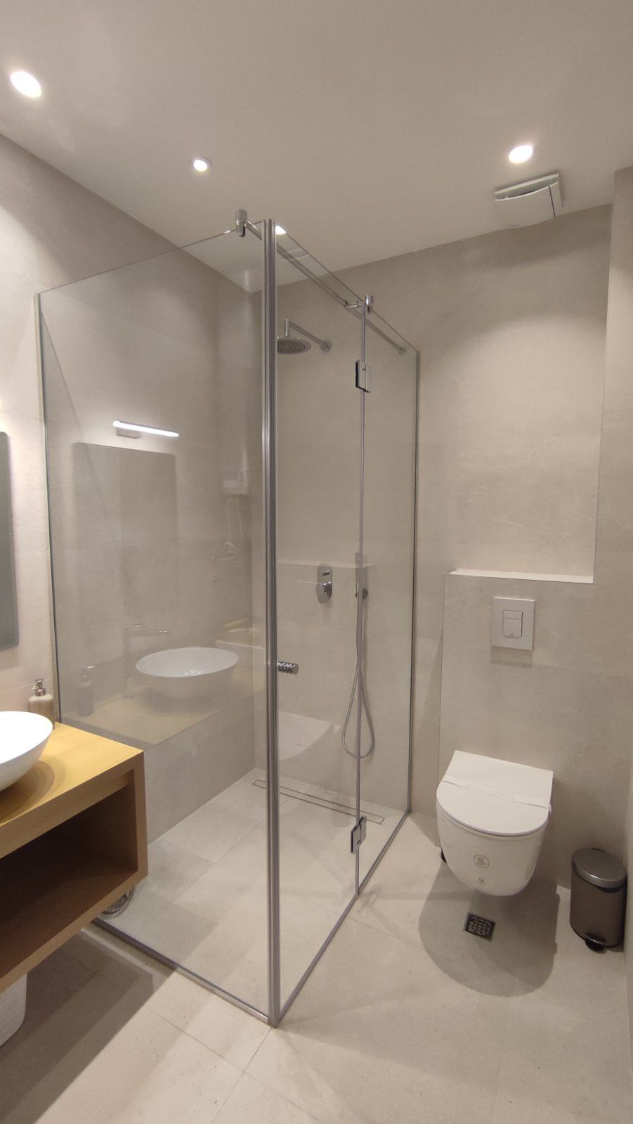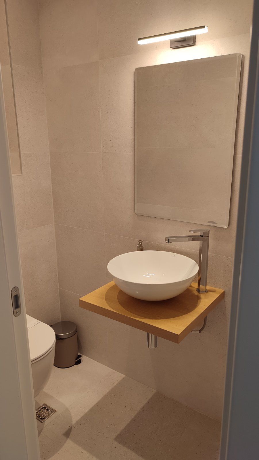 The apartment features a hallway, living room with kitchen, two bedrooms, a bathroom and a guest WC with underfloor heating, and a terrace with breathtaking sea and city views.