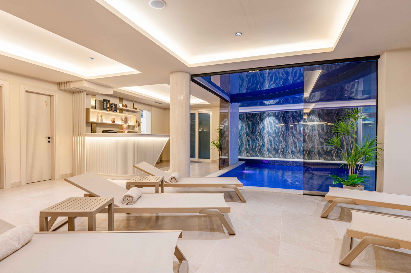 This exceptional apartment has an area of 100 m² and is located in an exclusive area just below the highway, in a hotel-type residential building with a wellness spa centre.