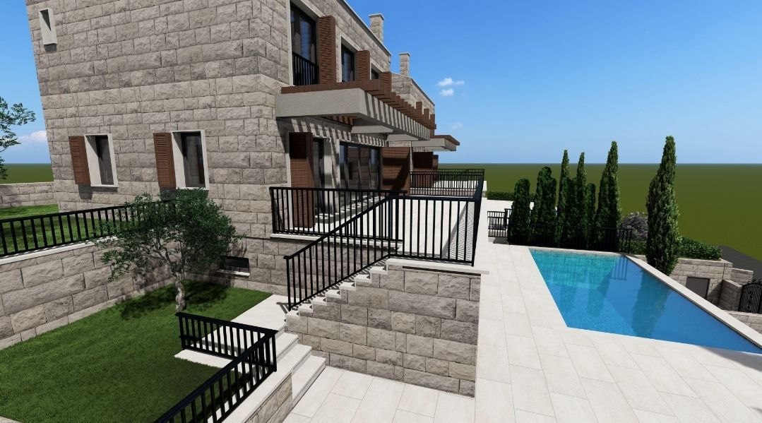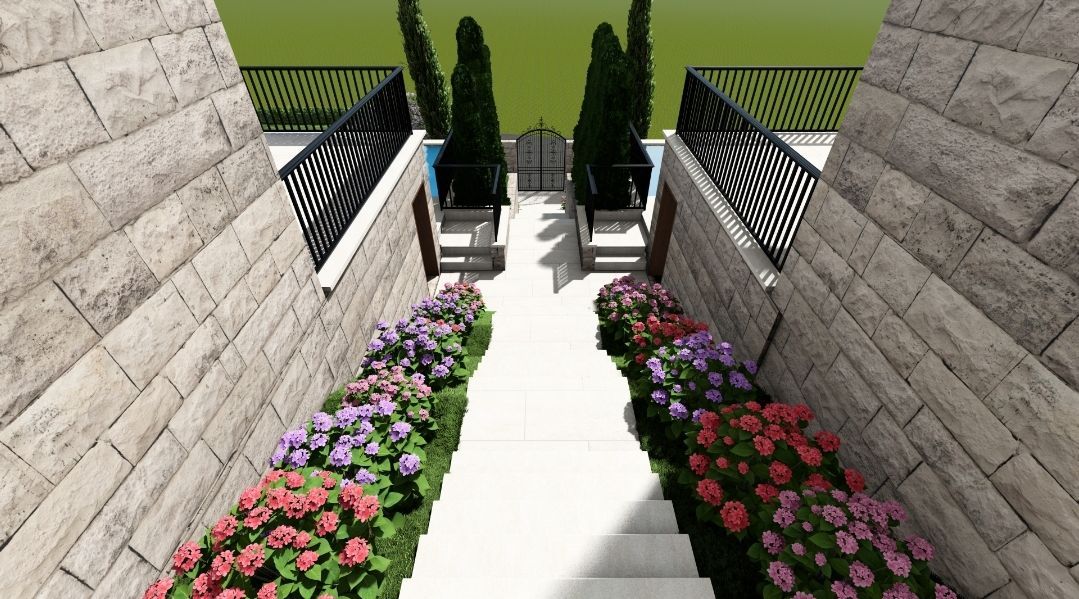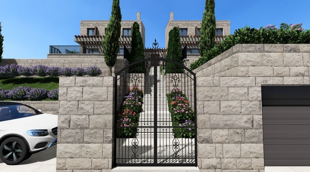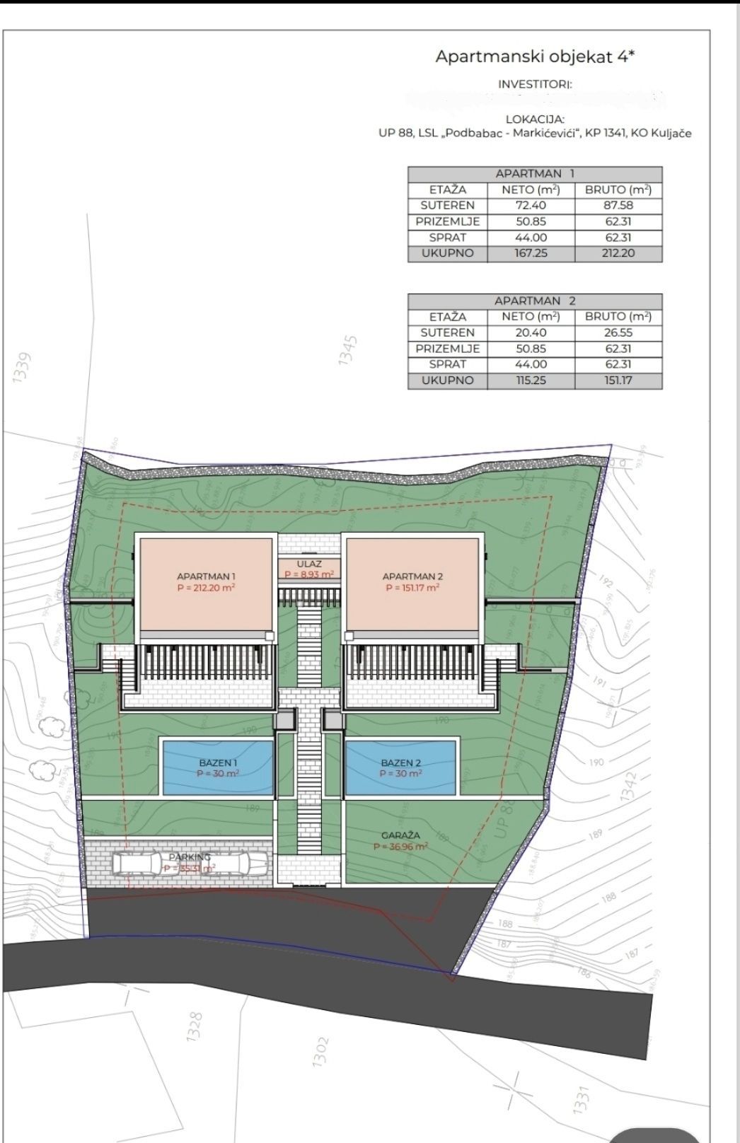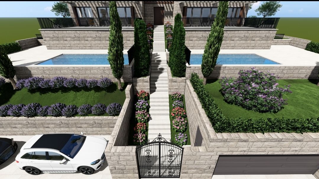 Both villas have a swimming pool (9x4 m) in the yard, a garage for two cars, and additional parking for three vehicles. The total plot area is 888 m², and the villas are located in the quietest part of Bečići, near the natural attraction – the "Čučuci" waterfall.