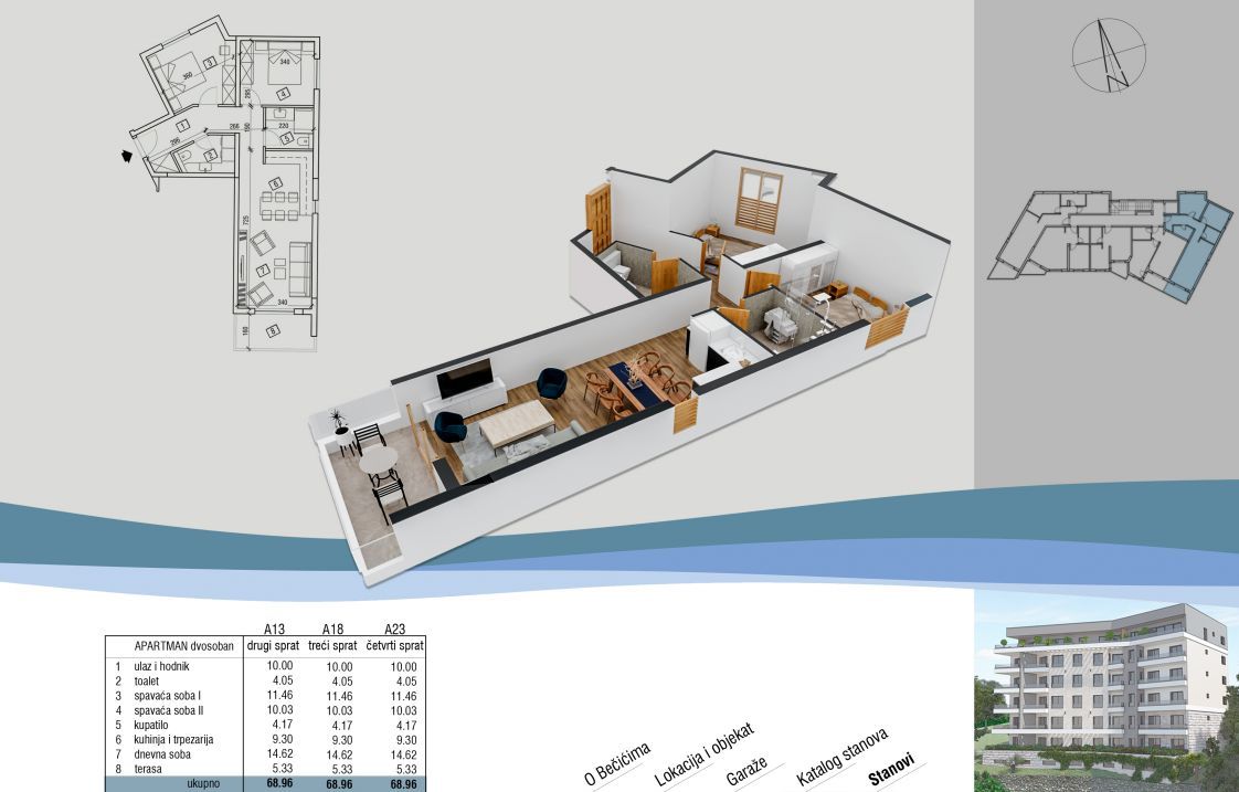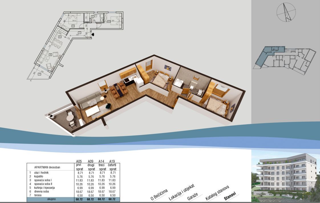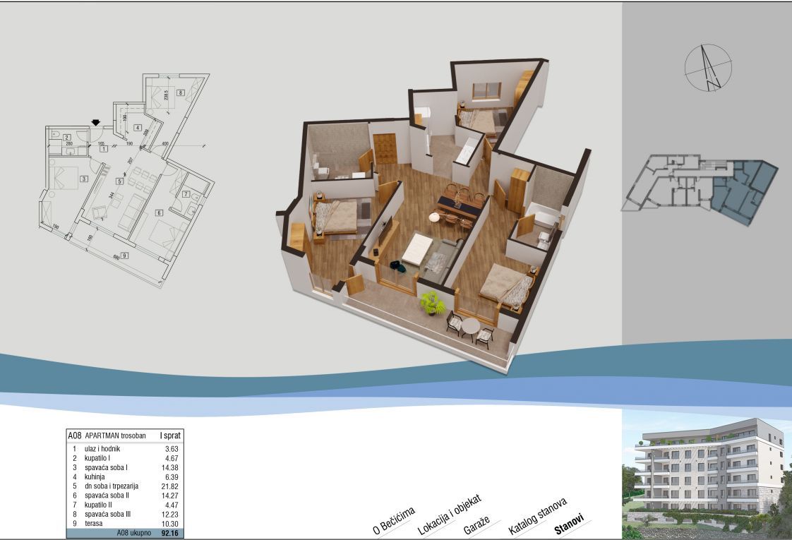 At an altitude of around 65 meters, just 500 meters from the beautiful Bečići beach, construction will soon begin on a modern residential complex designed for complete enjoyment in a peaceful setting with panoramic views of the Budva Riviera.