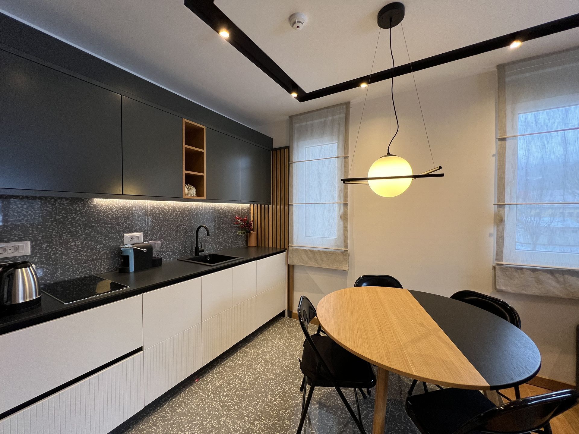 הדירה כוללת את כל המכשירים הנדרשים, כלי מטבח ופריטים יומיומיים – אין צורך בהשקעה נוספת. הדירה מצוידת בחימום מרכזי ותת רצפתי, ומבטיחה נוחות לאורך כל השנה. מהחלונות נשקף נוף יפהפה של הסביבה.
