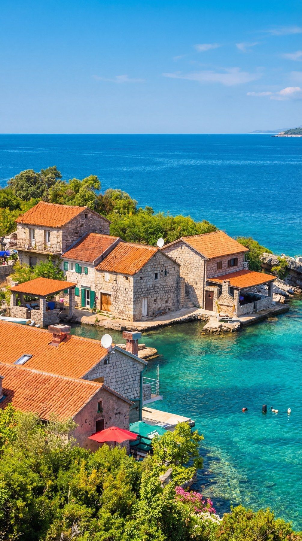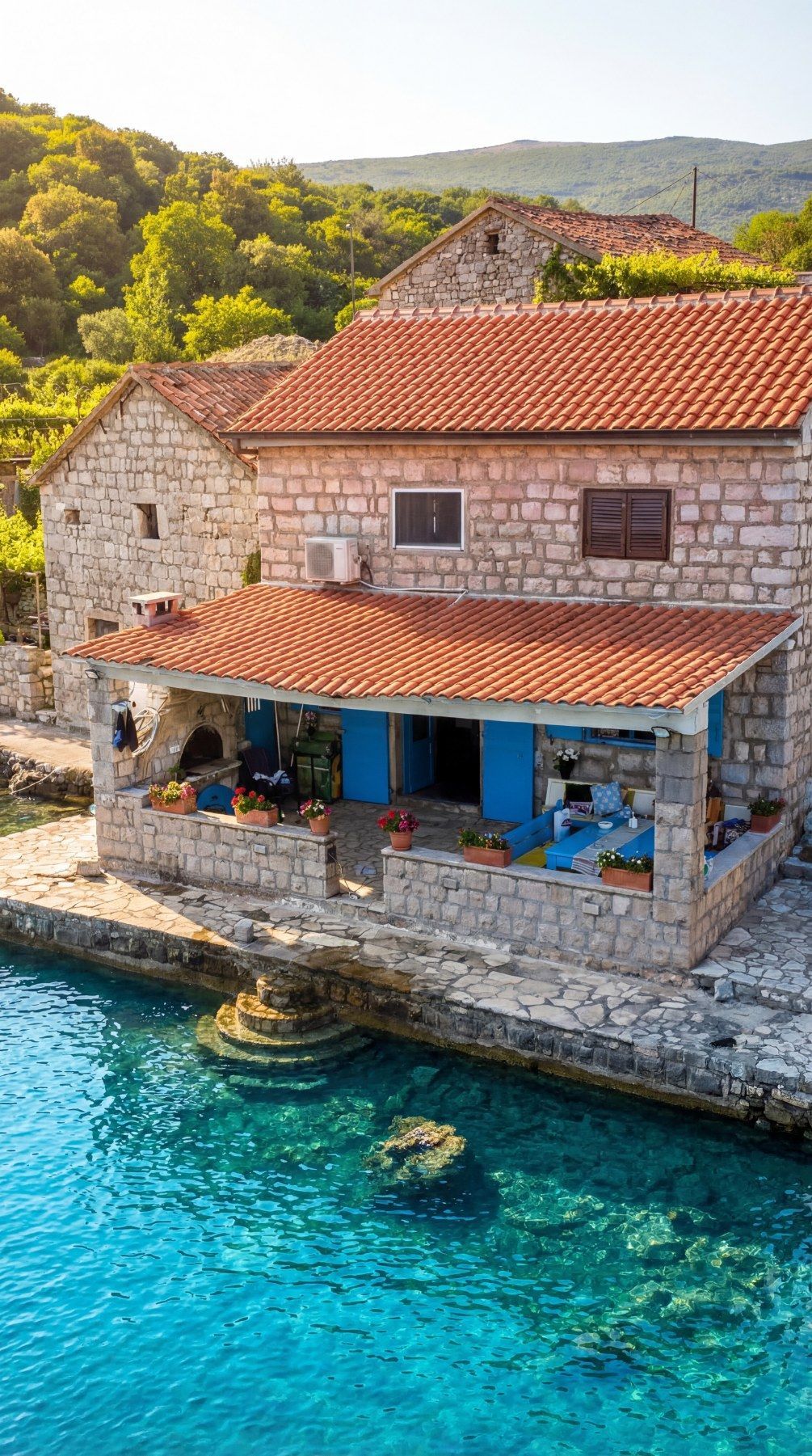 Predstavljamo vam jedinstvenu nekretninu na crnogorskom primorju – autentičnu kamenu vilu u mediteranskom stilu, smeštenu direktno na samoj obali mora, u skrivenom dragulju Luštice, ribarskom selu Kakrc, u opštini Tivat.