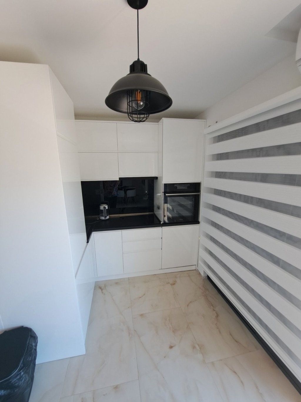 Prizemlje se sastoji od dnevnog boravka s kuhinjom i trpezarijom. Takođe, na ovom nivou nalazi se i gostinjski toalet.