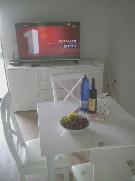 Sastoji se od open-space dnevne sobe, kuhinje i trpezarije, kupatila,spavaće sobe i terase sa pogledom na more .