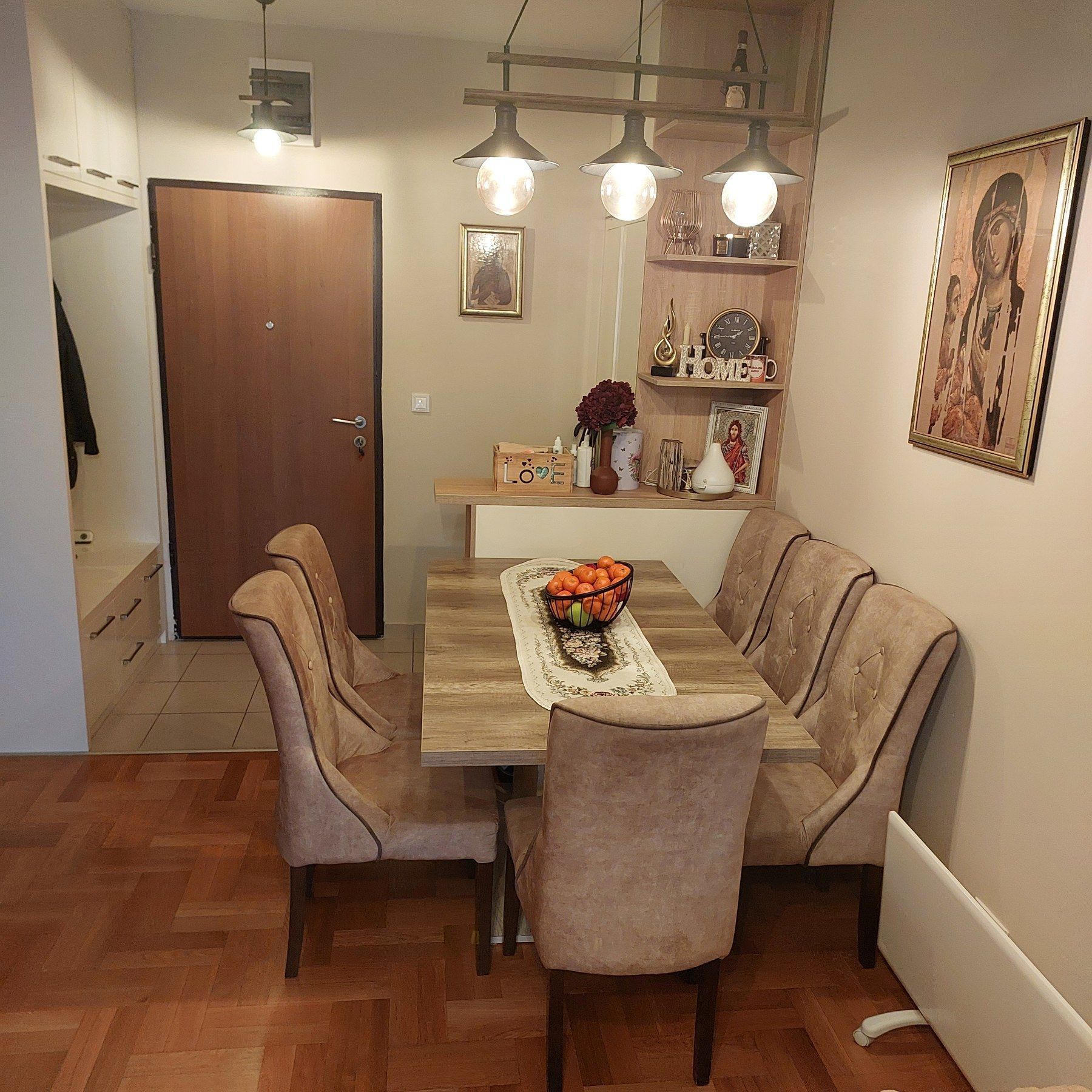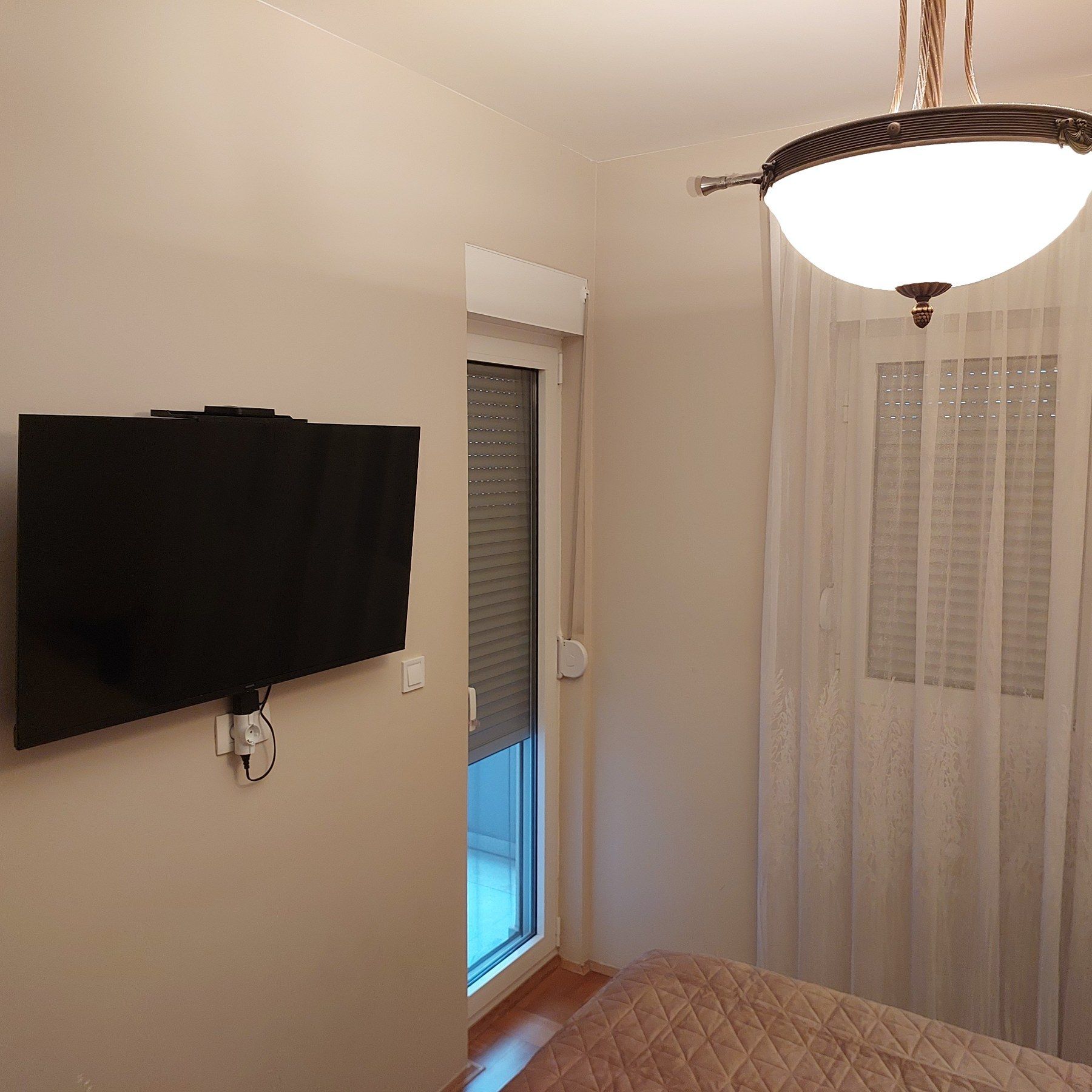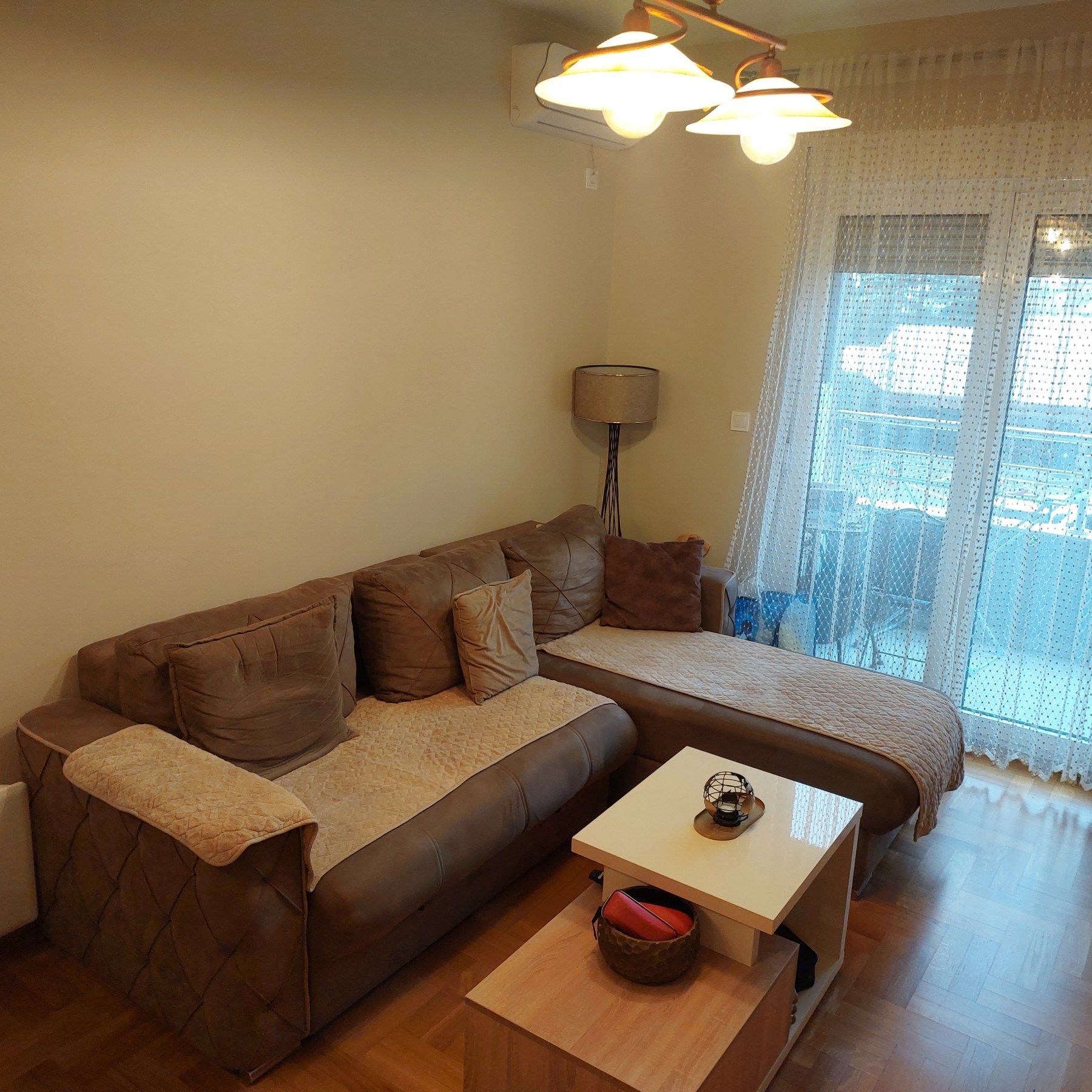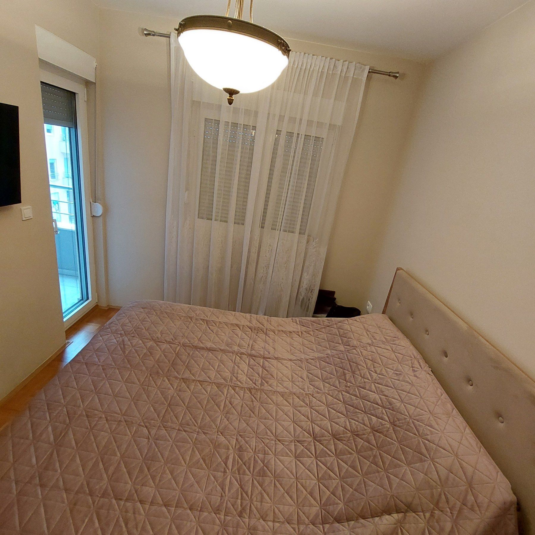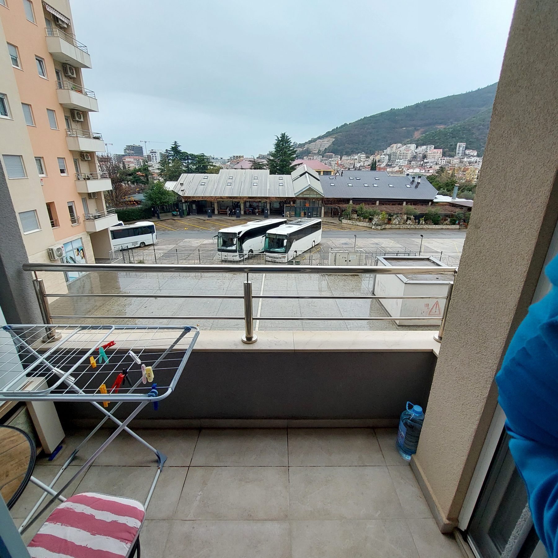 A furnished one-bedroom apartment of 47 m² is available for rent, located near the main bus station in the Rozino neighborhood, Budva.
