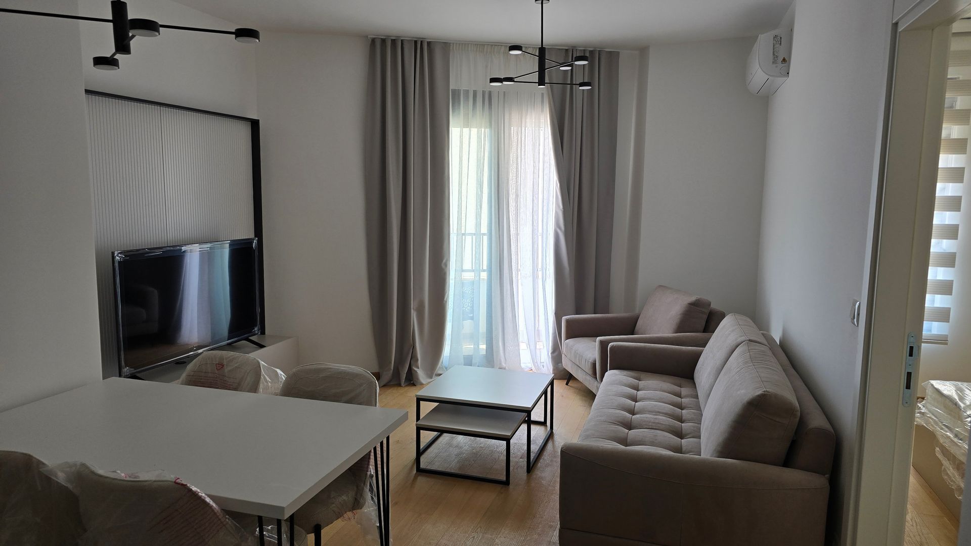 Deniz ve şehir manzaralı, modern döşenmiş 1+1 daire kiralıktır.