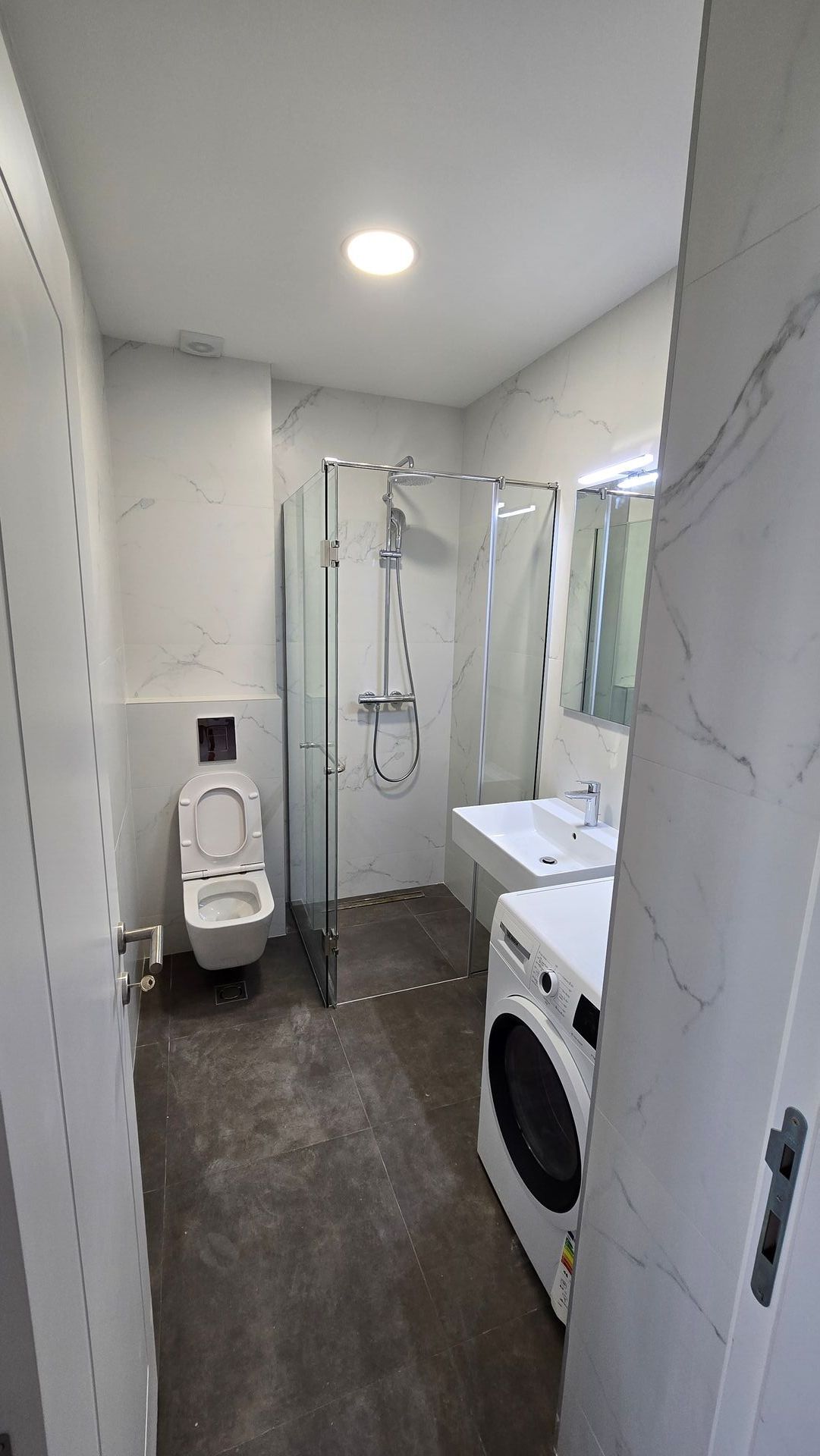 Deniz ve şehir manzaralı, modern döşenmiş 1+1 daire kiralıktır.