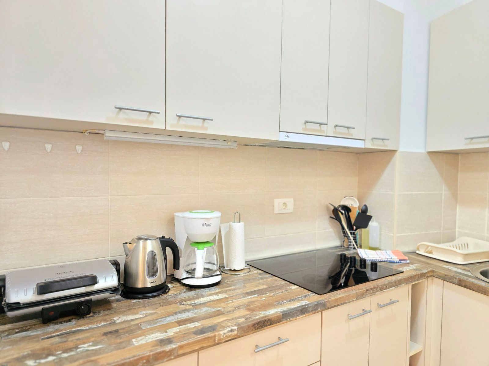 Bir oda tipi modern mobilyalı kiralık daire, Budva'da kiralık (uzun vadeli kiralık)